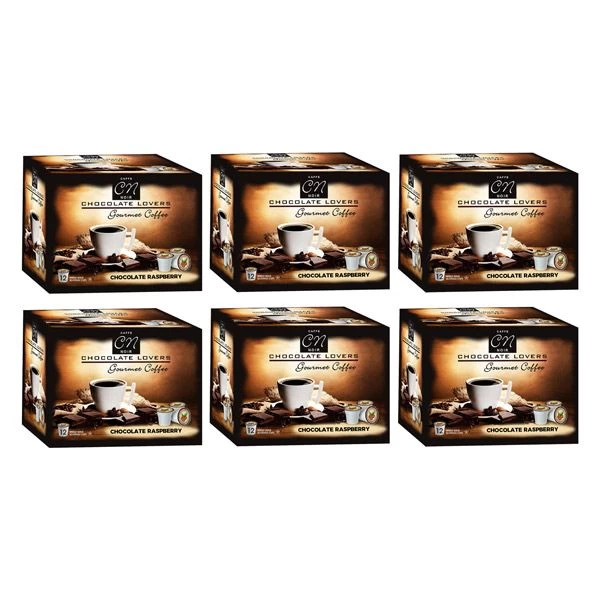 This sale is for six 12 count boxes of Chocolate Raspberry Caffe Noir Gourmet Coffee Single Serve Beverage Cups