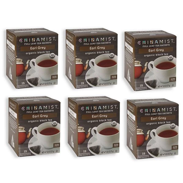 China Mist – Earl Grey Organic Black Full Leaf Tea Sachet, 6 Boxes 15 Count Each