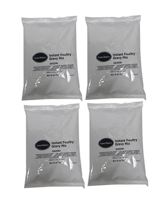 This sale is for 4 – 15 oz bags of Farmer Brothers Instant Poultry Gravy Mix