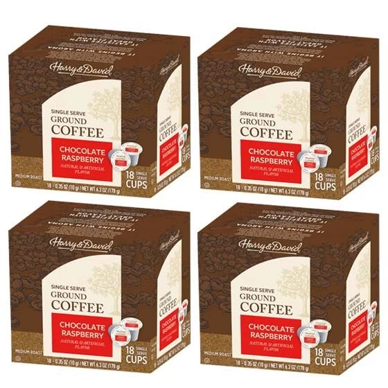 Introducing Harry & David’s newest offering – flavored coffee. Enjoy this four Box 72 Count Cups of Chocolate Raspberry Ground Coffee. Since 1934, Harry & David has been America’s first choice in gourmet gifting, offering a wide array of delicious offerings including artisanal meats and cheeses, decadent desserts, premium dried fruit, and so much more.With a reputation for unparalleled quality, Harry & David gifts and groceries are perfect for everyday enjoyment, special occasions and celebrations, and stress-free entertaining. Crafted with the utmost care, you can rest assured that Harry & David gourmet delights are the finest to be found.