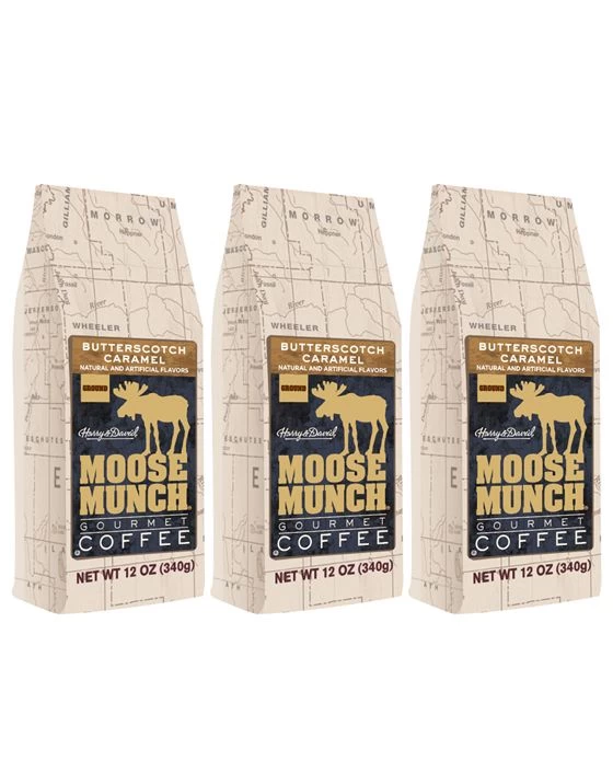 Harry & David Moose Munch Butterscotch Caramel Ground Gourmet Coffee 3 bags 12 oz each