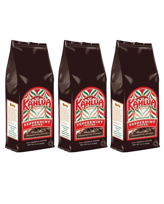 This sale is for 3 bags of Kahlua Peppermint Mocha ground coffee