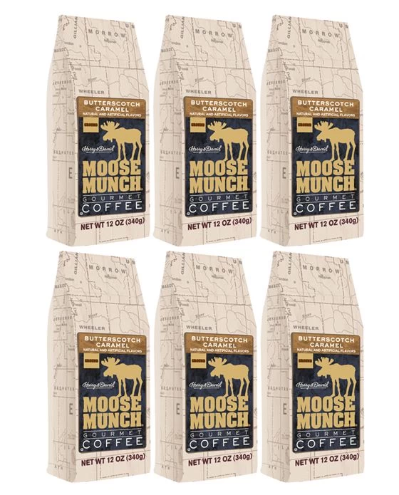 Moose Munch by Harry & David, Butterscotch Caramel Ground Coffee, 6/12 oz bags